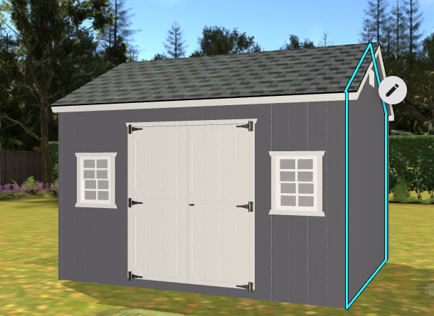 This workshop features our Charcoal color with matching corners, White window and door trim and Dual Gray shingles; (2) 18×23 White windows and a 5′ double door.