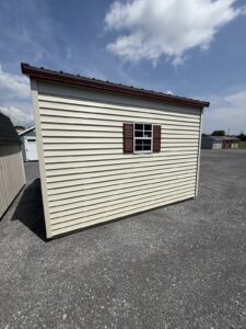 12×12 vinyl workshop with 8-foot walls for added storage!