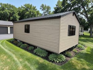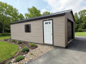 We’re thrilled to introduce a new addition to our lot – a 14×28 Vinyl Garage featuring a workbench! Due to the high demand for garages recently, it seems we can hardly keep them in stock!