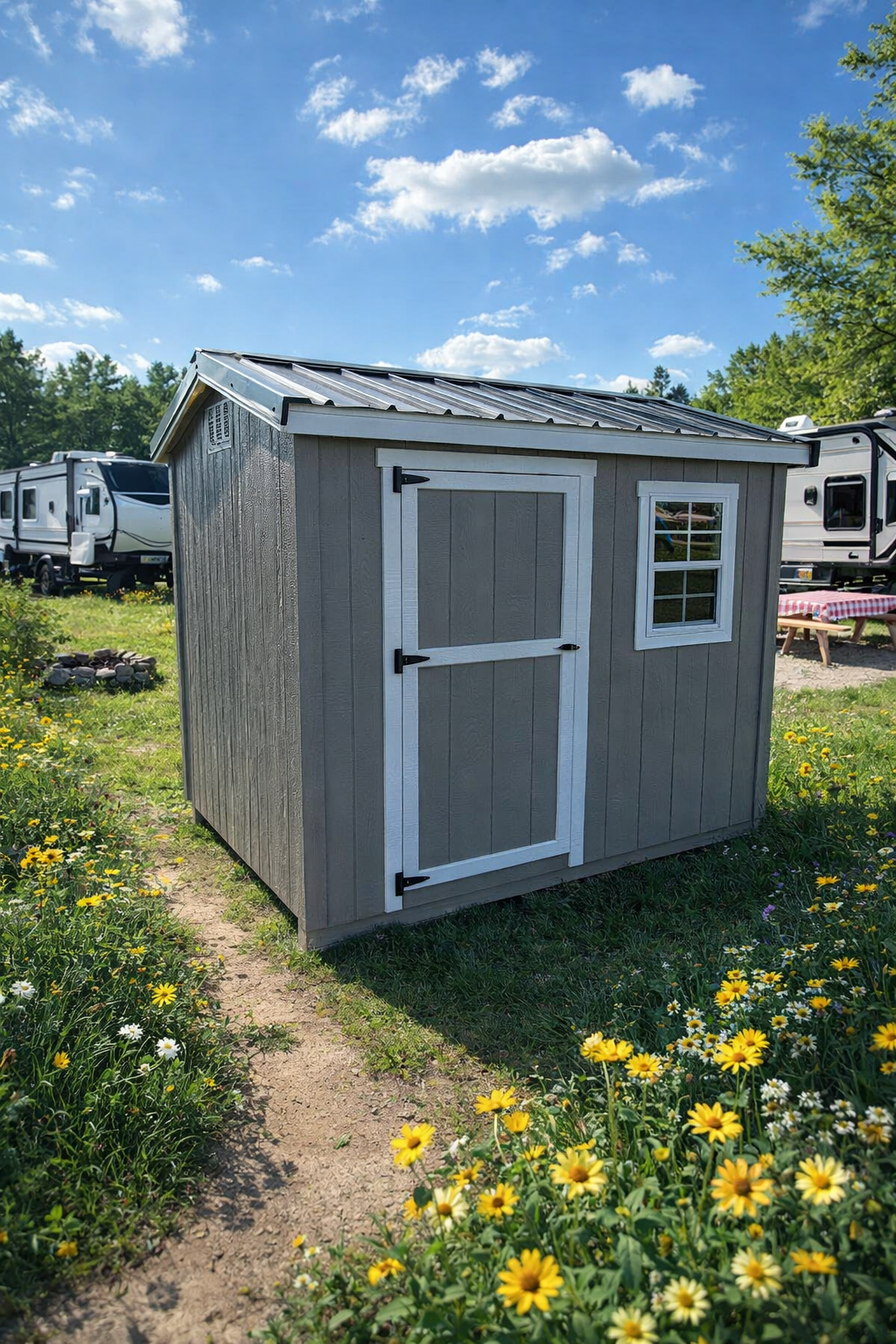 Our 6x8 Clubhouse Ideal for: Small backyards Campsites Pool supplies This charming clubhouse features a Clay paint finish with white trim, a black metal roof,...