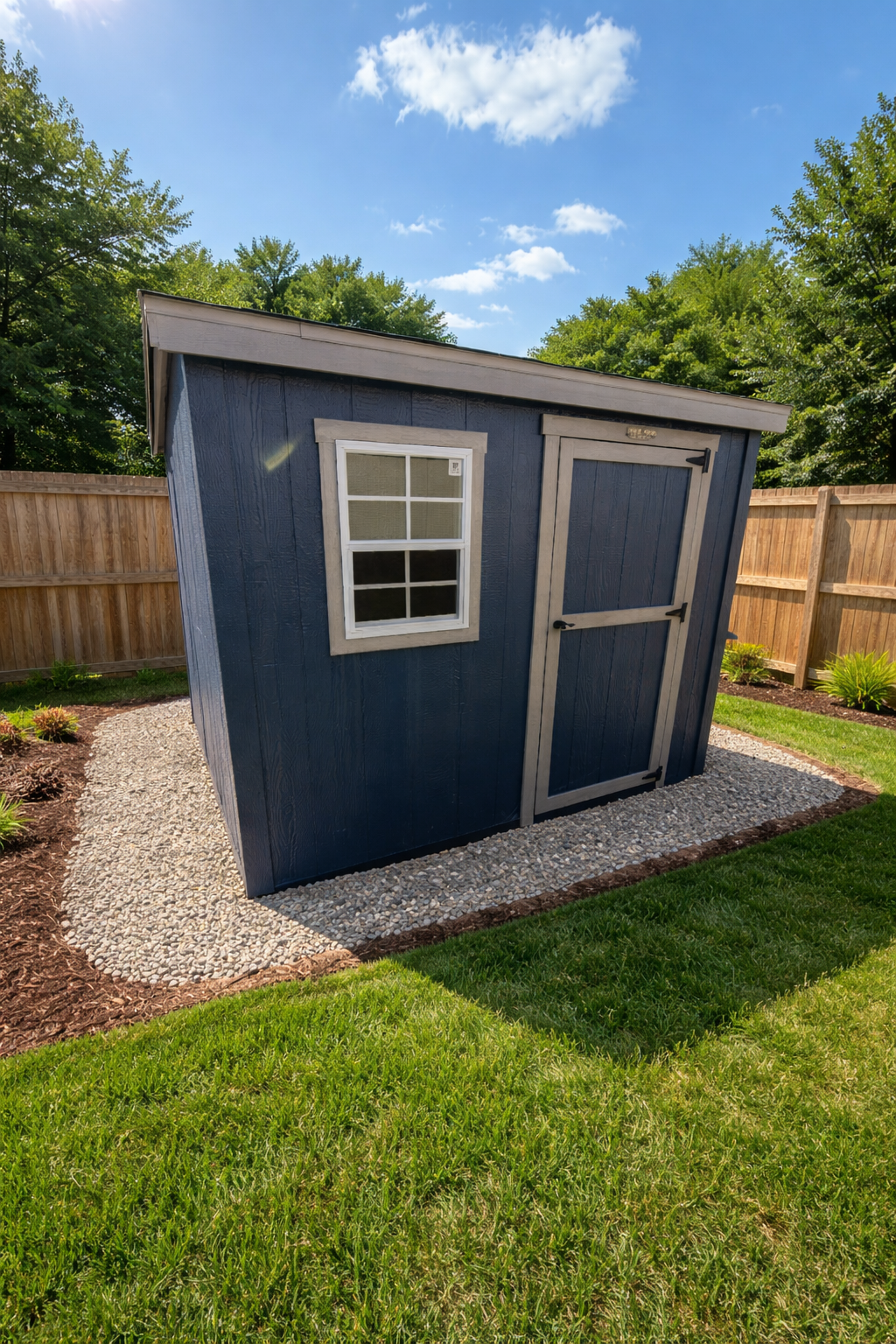 Our 6x8 Clubhouse Ideal for: Small backyards Campsites Pool supplies This charming clubhouse features our Gale Force Blue paint finish with white trim, a black...