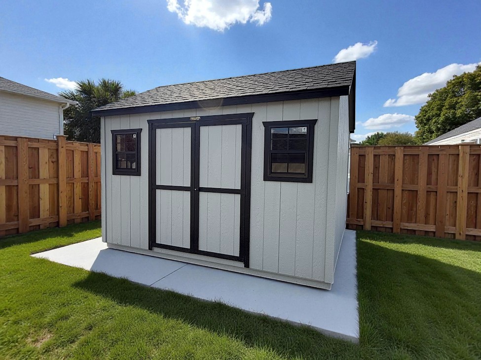 This beautiful 10x14 Garden Shed has been brought back from our Penns Valley lot. The crisp almond color with black trim makes building great for...