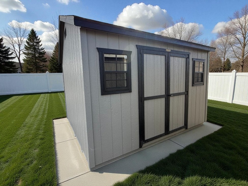 10x14 Olive carriage house with almond trim would look great in your backyard.